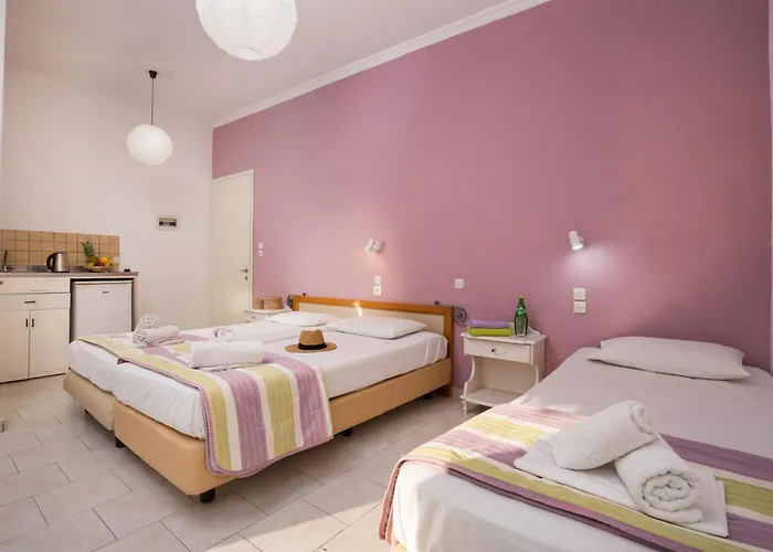 Com piscina, o hotel Island Kavos Annex Studios fica a uma distância de 5 minutos de carro da Praia de Arkoudilas. Com vista para o mar, este apart-hotel recebe os hóspedes com o pequeno-almoço continental diariamente.
